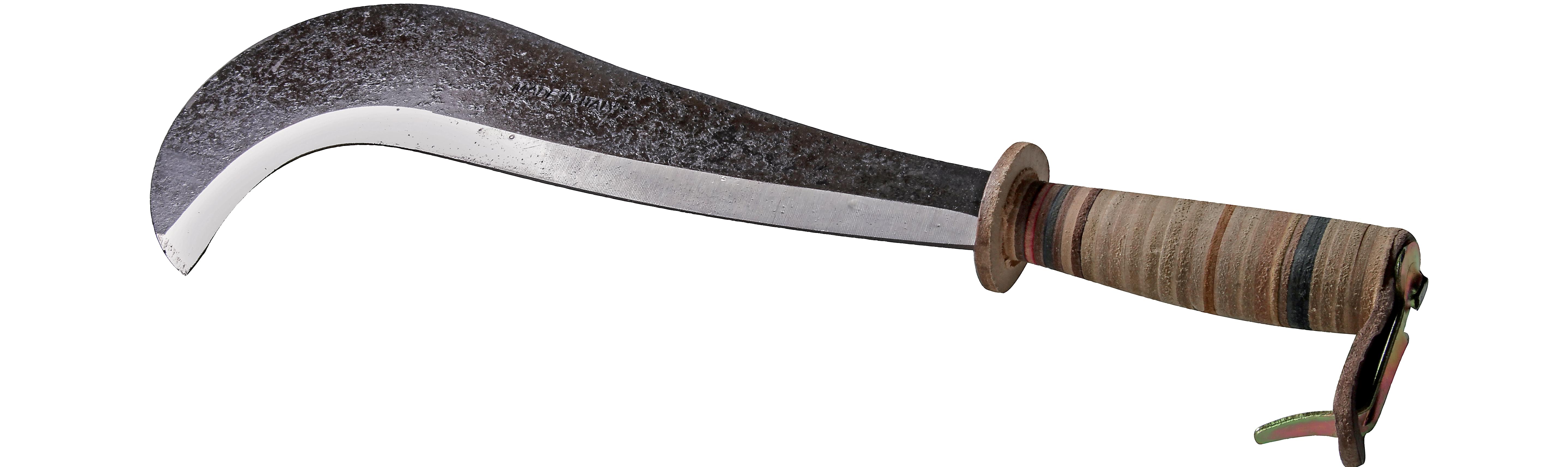 Billhook with a 280mm blade in burnished and painted steel. With leather handle. Professional performance distinguishes the products of the PRO line, designed to meet the needs of professionals or DIY enthusiasts.