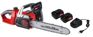 The Valex M-ES 36 electric chainsaw has a dual 18 V lithium battery power supply and is equipped with a 42 cm bar and Oregon chain. It features an oil tank with a window for external level reading and an automatic and adjustable chain lubrication device. The chain tensioning is quick thanks to the special side wheel that allows operation without the use of tools. Equipped with safety devices: quick chain stop, switch against accidental start-up, and handguard with a device to block the chain in case of kickback. Sold with a hard cover to protect the blade. Equipped with a soft grip. Batteries and charger not included.
