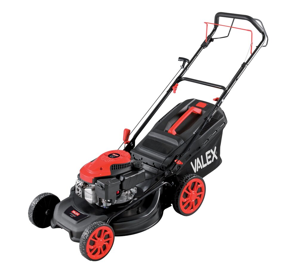 • Tondeuse Valex TST5143 avec moteur à explosion 4 temps de 170 cm3 (4,3 CV) et traction jusqu'à 3,4 km/h, idéale pour l'entretien des pelouses de taille moyenne et grande.