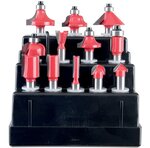 • Fornito di 6 frese assortite, guide per fresature parallele, circolari, fori, copia profili, 2 mandrini intercambiabili.