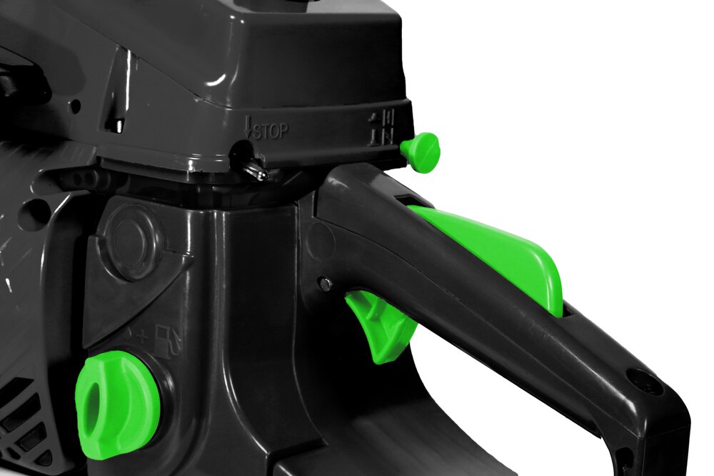 • Arresto catena rapido, paramano con blocco contraccolpo e acceleratore con dispositivo di sicurezza.