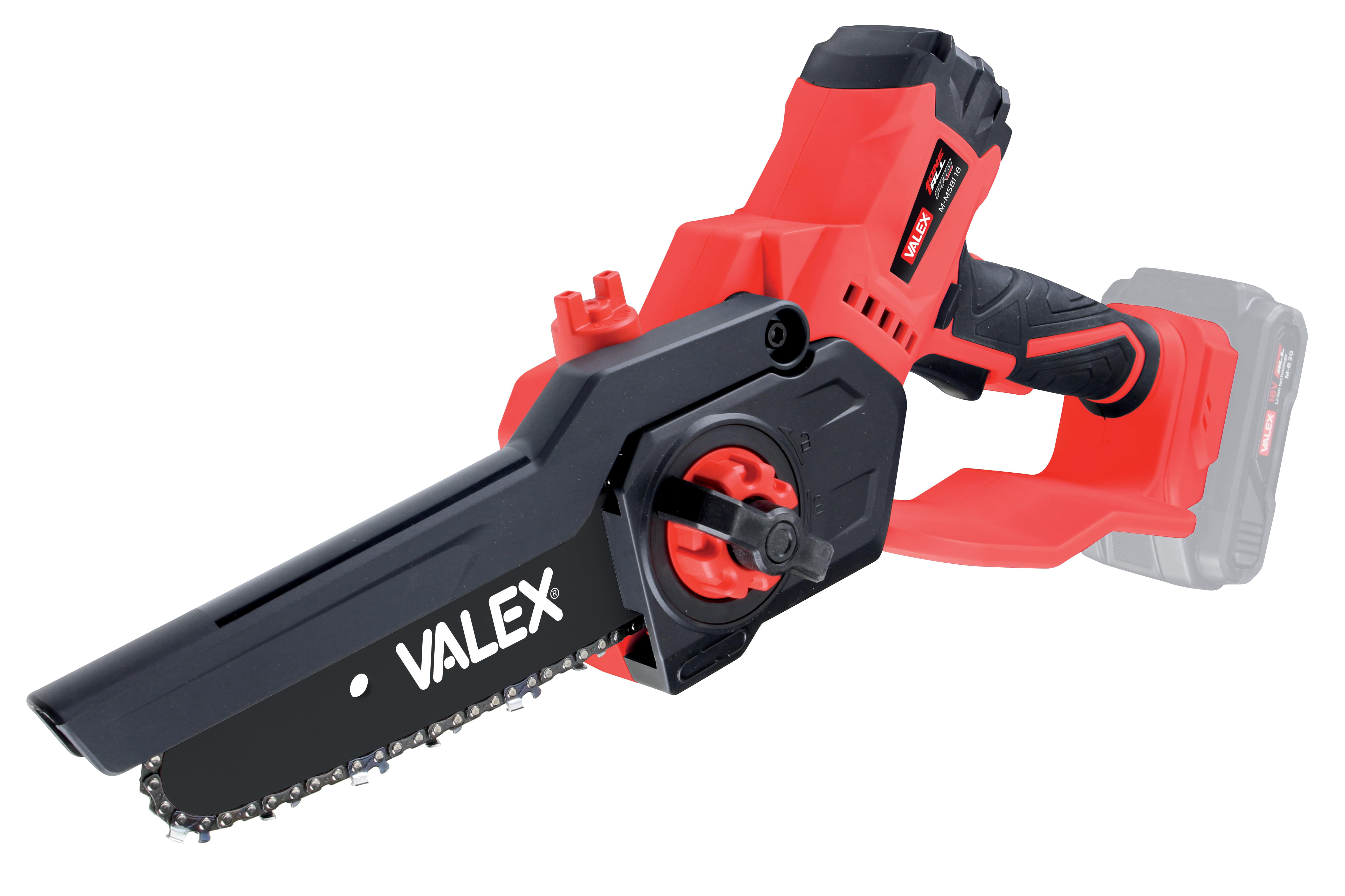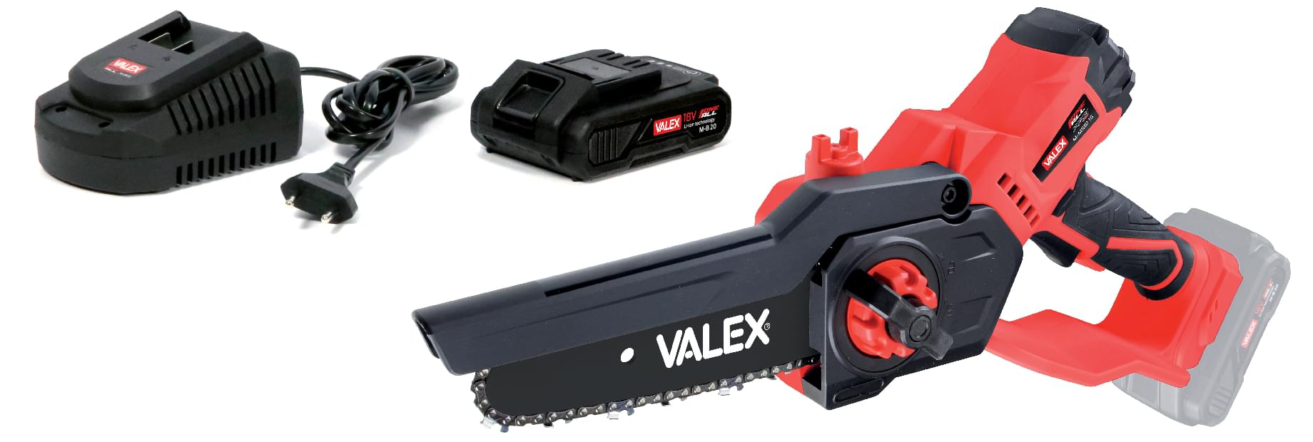 • Mini sega da potatura Valex M-MSB1 18 con alimentazione a batteria al litio da 18 V, compatibile con il sistema OneAll di Valex della stessa categoria di tensione.